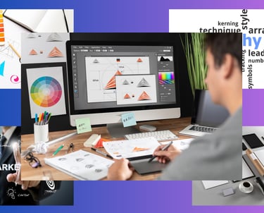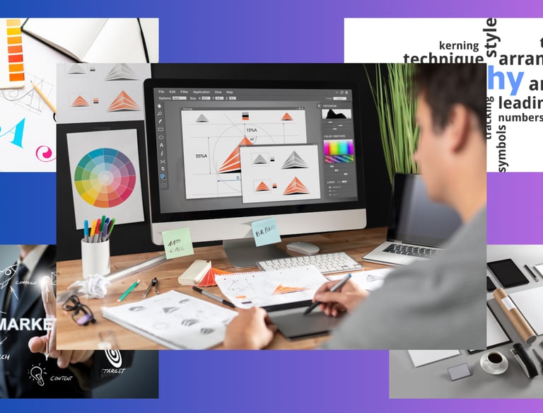 Desenvolvemos logotipos, paleta de cores, tipografia e elementos visuais